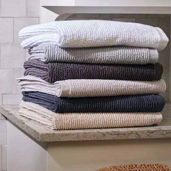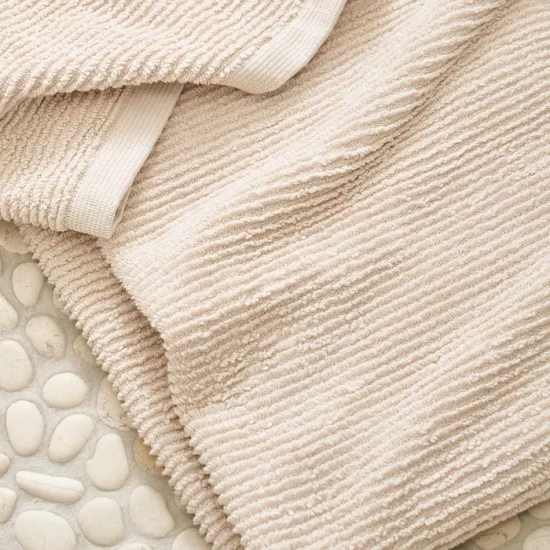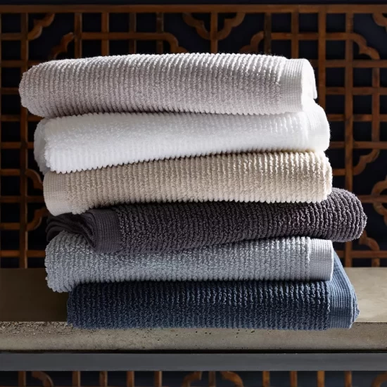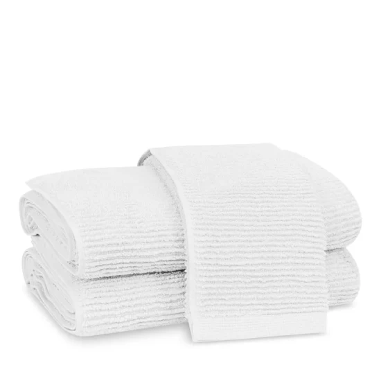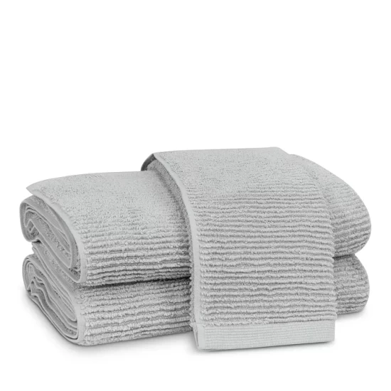 The Matouk Aman bath towel collection features zero-twist cotton yarns and a lofty ribbed texture for towels that are irresistibly soft, plush, and absorbent.