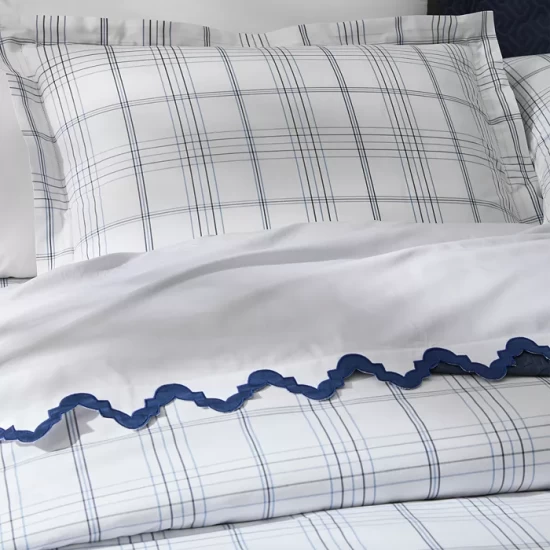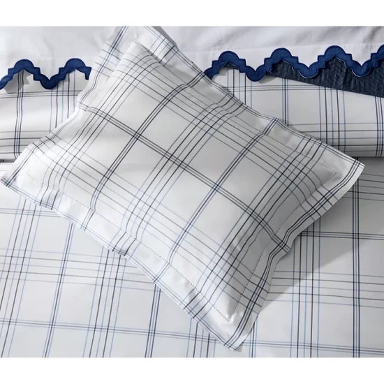 A fresh take on a classic, August Plaid presents an elegant reworking of Schumacher’s archive check pattern. Each colorway features two tonal shades finely interwoven in a 500 thread count cotton percale, with a special finish that delivers a remarkably smooth hand-feel. Hemstitch detailing adds a clean, artisanal touch; an elevated style for the modern primary bedroom. Pair Matouk’s August Plaid bed linens with the matching August Plaid Fitted Sheet.