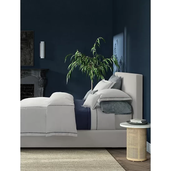 This bedding collection by Montauk exudes modernity with a painterly touch. Crafted in the Philippines by an intricate hand-guided process, this design features Schumacher’s Burnett brushstroke print in a border trim over ultra-smooth cotton percale. Calming and contemporary.