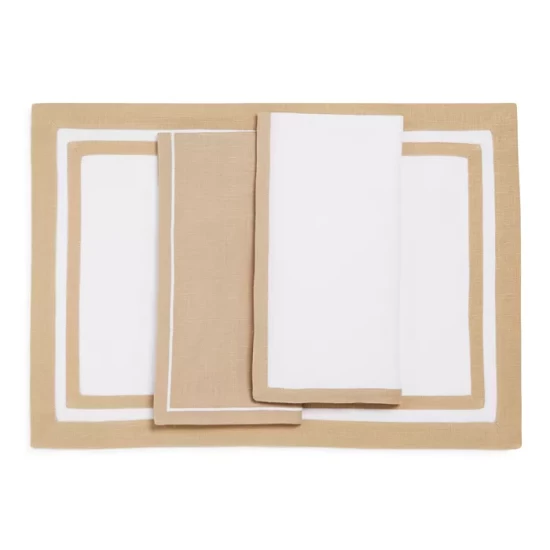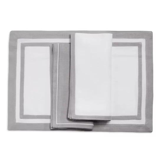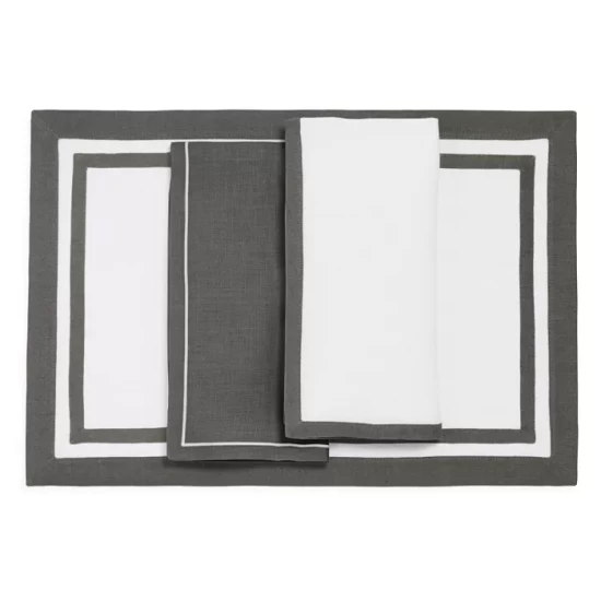 Mix and match placemats and napkins from Matouk’s luxury linen collections–border, rectangle and satin stitch–for a signature setting.