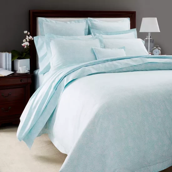 Crafted in soft, luxurious Egyptian cotton, the Nikita bedding collection by Lulu DK for Matouk features a small, abstract spotted print in bright aqua or coral hues. Each piece is finished with a classic flange.