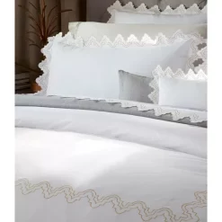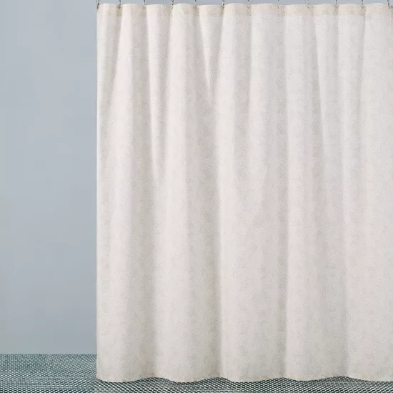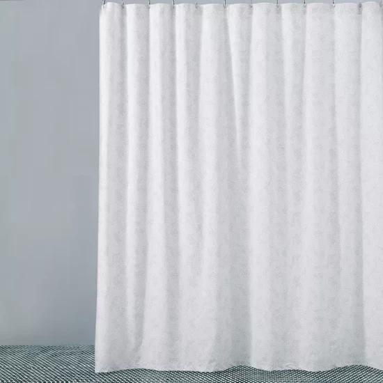 Featuring an eye-catching dotted motif inspired by the reflection of shimmering sunlight on water, this Matouk shower curtain adds a pop of color to the bath.