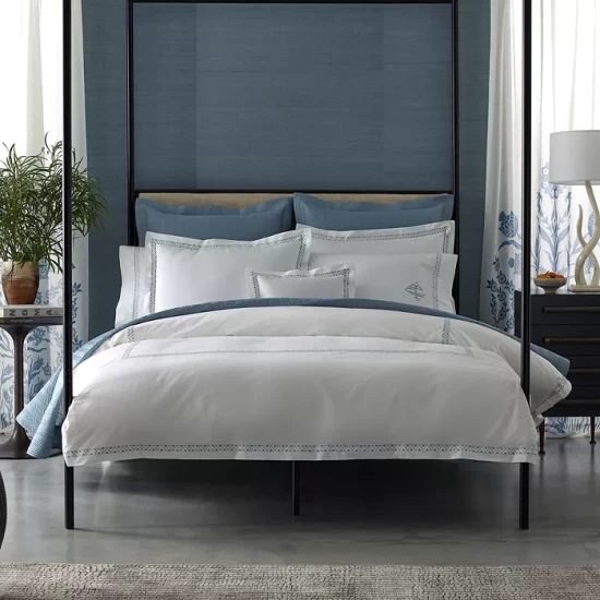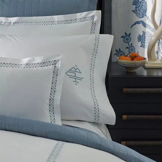Prado creatively combines a chic Schumacher design and a classic Matouk construction, with breathtaking results. The finished product has a crisp, tailored look with a delicious pop of colorful decoration.