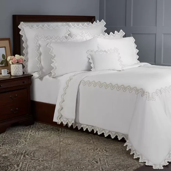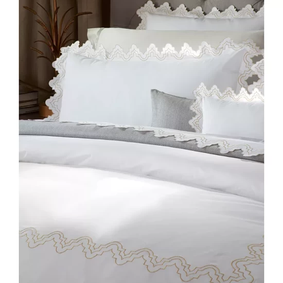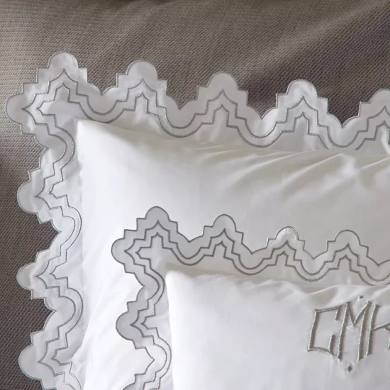 Matouk’s Soraya Collection is a timeless statement of bedding couture, utilizing the finest silver and gold embroidery within intricate scalloped borders. This refined bedding collection is constructed with 600-thread count Egyptian cotton, making the ultimate statement of opulence.