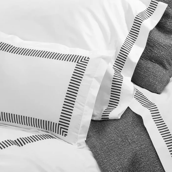 Matouk’s Sterling Bedding Collection is crafted of 350-thread count cotton percale, a simple weave, characterized by a matte finish and crisp hand. This lightweight, breathable design is perfect for summertime or warmer climates.